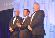 ClassNK Chairman and President Noboru Ueda (center) receives the IT Solutions Award at the 2014 International Bulk Journal Awards
