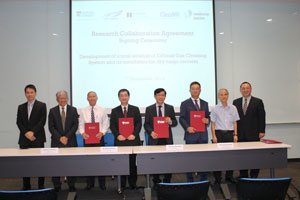 Nippon Yusen Kabushiki Kaisha (NYK Line), the Monohakobi Technology Institute (MTI), which is an NYK Group company, and ClassNK have teamed up with Singapore-based Nanyang Technological University and Sembcorp Marine Technology Pte. Ltd. for research on an exhaust gas cleaning system (EGCS)* intended to be used to control SOx emissions** outside emission control areas (ECAs).