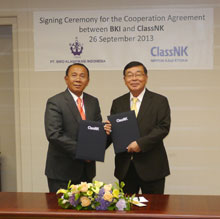Tokyo – Leading classification society ClassNK (Chairman and President: Noboru Ueda) announced that it has entered into a comprehensive cooperation agreement with the Indonesian classification society PT. Biro Klasifikasi Indonesia (Persero) (BKI) on Thursday 26 September 2013.