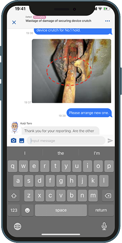チャット形式にて、PSCレポート・機器の不具合などの報告し、PC版を活用することで陸上スタッフとの密な連携を行い、その是正の管理が可能