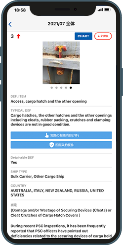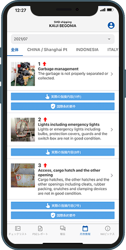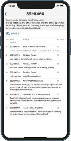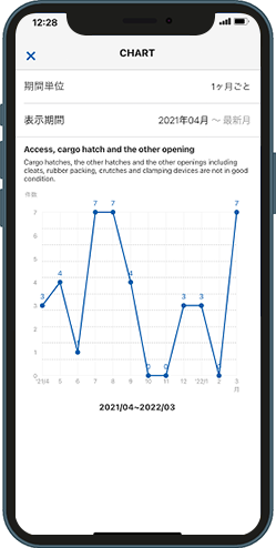 ユーザー様が設定した各国・港における各月の典型的欠陥Top10をその推移グラフや実際の指摘内容、画像と共にチェックすることが可能です。